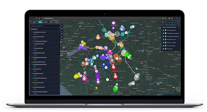 Время простоя сотрудников показывается в виде полупрозрачных кружков разных размеров. Чем длительнее была остановка, тем больше размер кружка