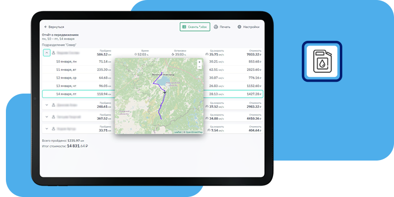 Вы увидите точную картину затрат топлива и пройденный километраж